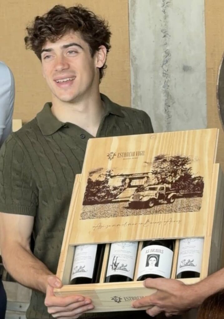 Alejandro Vigil sorprendió a Colapinto con un exclusivo box de vinos de alta gama.