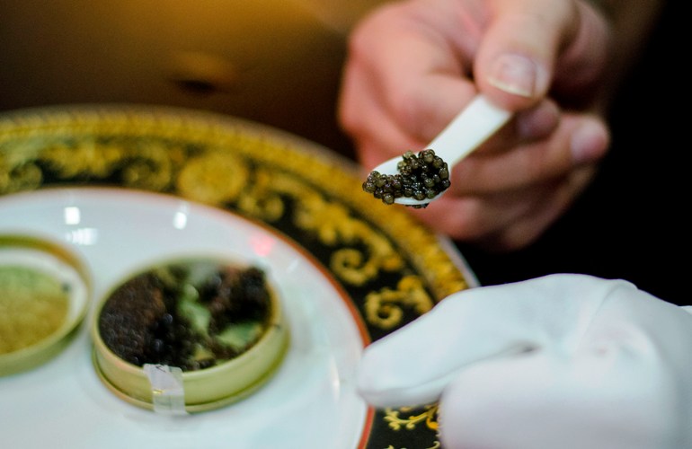 Para saborear las huevas de esturión es fundamental que la temperatura sea la adecuada: debe conservarse y consumirse entre los 0 y 4 grados. Para que no interfiera ningún otro sabor se sirve utilizando una cuchara de nácar y se coloca una pequeña cantidad –entre 5 y 10 gramos- en el dorso de la mano, entre el dedo índice y el pulgar.