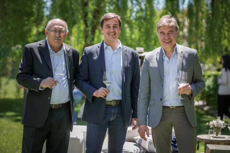 Onofre Arcos, Diego Ribbert y Hervé Birnie-Scott en los jardines de Bodegas Chandon.