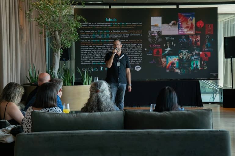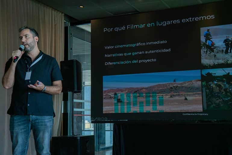 El encuentro continuó con la presentación de Alejandro Wise, productor de Fábula, quien compartió el caso del rodaje Wild Horse Nine, desarrollado en locaciones desafiantes del territorio chileno, entre ellas Rapa Nui (Isla de Pascua).