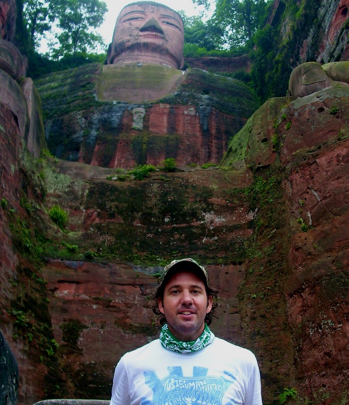 Llegué temprano y pude admirarlo con tranquilidad antes de la llegada de la horda de los tours guiados. Está sentado con las manos sobre sus rodillas. Desde la cabeza se desciende por una inquietante escalera muy angulada cavada en la roca que baja paralela al Buda hasta el nivel de sus pies. Desde abajo, junto al río, la vista de la enorme estatua es maravillosa. Transmite una especie de calma que, sumada al entorno de selva, río y montaña, te llega hondo. Junto con la Gran Muralla este fue el lugar que más me impactó. Desde el río atracan los barcos con gente para admirar este monumento declarado Patrimonio de la Humanidad por la UNESCO.
