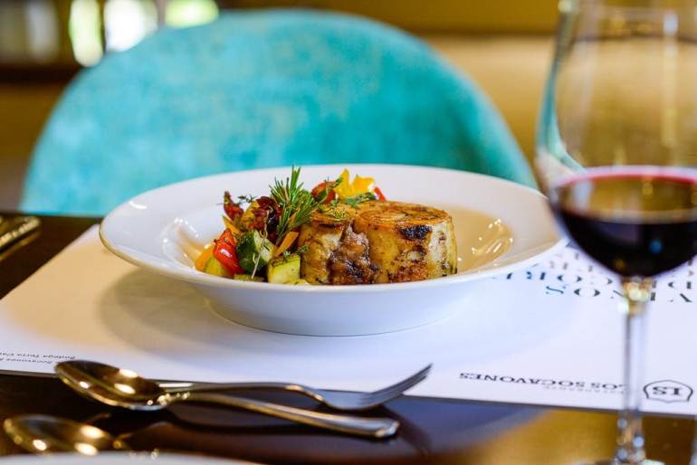 Cabrito de Quilino, con higos, panceta y cebolla de verdeo acompañado de Gran Quilino 2016, Bodega Terra Camiare.