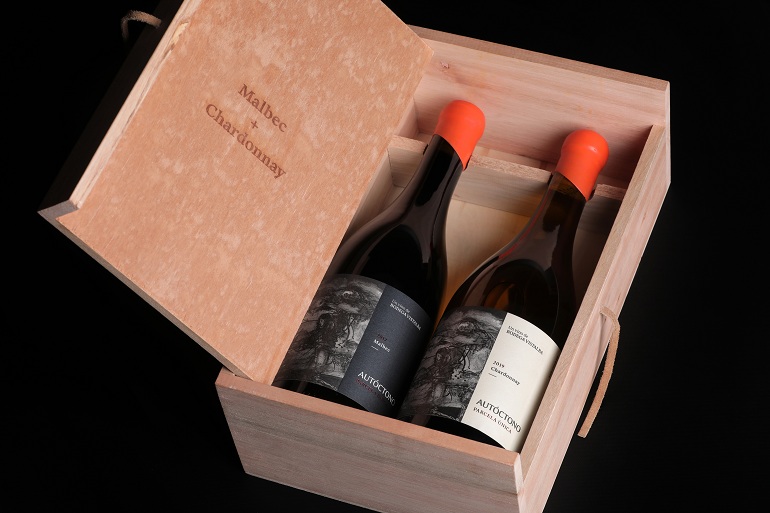 Autóctono Malbec 2017 y Autóctono Chardonnay 2019, vinos elaborados con uvas de Gualtallary. El nombre de la marca y su etiqueta nacieron de la mano, inspirados en una obra de arte de un gran artista mendocino, Daniel Ciancio, quien desde hace mucho acompaña a la bodega. La obra se titula “Paisaje Autóctono”.