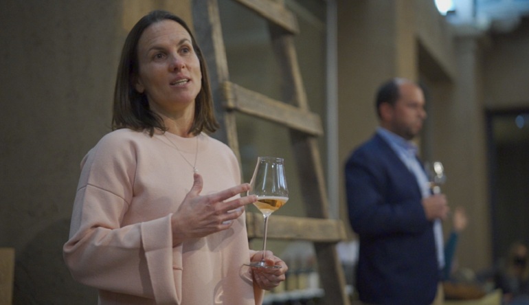 Paula Pulenta junto al enólogo Fernando Colucci durante el lanzamiento de «Colecciones Singulares». / Ph: Leo Palet.