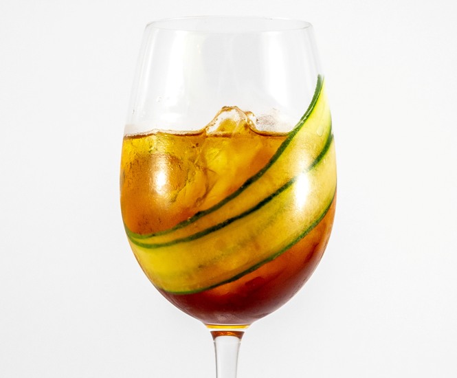 Colocar hielo en un copón de vino. Colocar el gin, el Carpano Rosso y la gaseosa lima limón. Mezclar todos los ingredientes con la ayuda de una cuchara. Decorar con una rodaja fina de pepino.