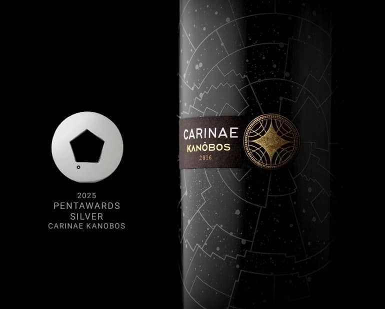El estudio mendocino Dizen, integrado por los diseñadores Ignacio Eguiguren y Laura Goenaga, obtuvo un Pentawards Silver, uno de los reconocimientos más importantes del mundo del packaging, por su trabajo para el vino Kanobos, ícono de Bodega Carinae.