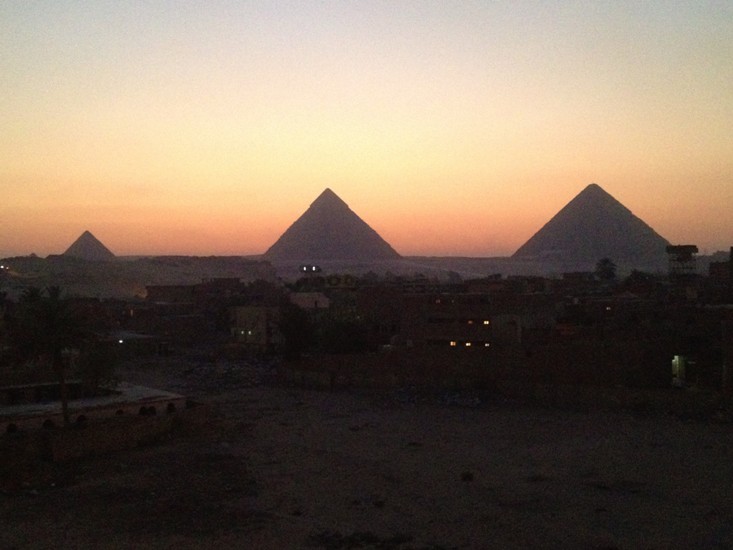 La Esfinge y las tres pirámides de Giza son las únicas de las Siete Maravillas de la Antigüedad que todavía permanecen en pie. Ingresamos a las profundidades de Keops, la más grande de ellas. Serpenteamos por túneles y pasadizos tan estrechos que había que agacharse para poder continuar. Se accede a la cámara mortuoria del Faraón, el punto más energético de la pirámide. A la salida negociamos para andar en camello. Acordamos un precio pero al finalizar los guías querían más de lo acordado. Bordeamos Kefrén, hijo de Keops, y llegamos hasta Micerinos, su nieto. Esta es la más pequeña de las tres pirámides.