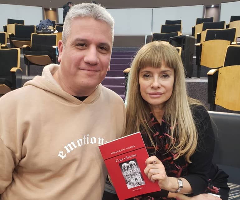 El periodista y escritor Fernando Toledo le obsequió su último libro a Florencia.
