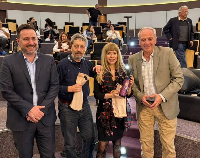 La velada contó con la presencia del intendente Raúl Rufeil, el secretario de Gobierno Mauricio Petri, el director de Cultura Alfredo Laferriere, el director de Turismo Jorge Corrales, además de otros funcionarios, periodistas y referentes de la cultura departamental. En un gesto especial, el intendente obsequió a Canale una botella de Bonarda Edición Especial 2025, con etiqueta homenaje al general San Martín.