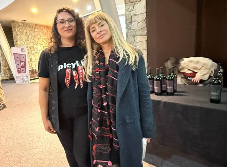 Cecilia Flores, de Kyros picantes, junto a Florencia.