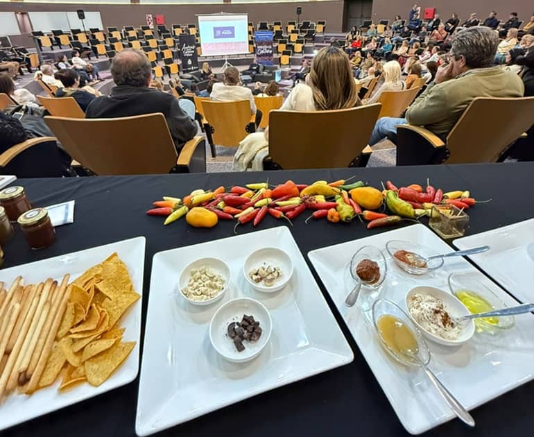 Como en cada encuentro, los sabores de Kyros picantes acompañaron la degustación de vinos.