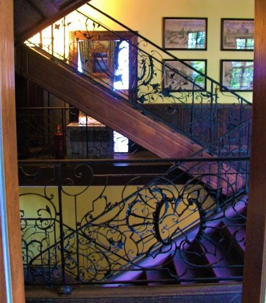 La escalera que comunica todos los pisos es de hierro forjado con escalones de madera y tiene inscriptas las iniciales de sus padres JCG y CEG (Johann Caspar y Catharina Elisabeth Goethe). En el primer piso lo más llamativo es el salón de música. Como toda familia acomodada, cultivaban las artes musicales y ejecutaban diversos instrumentos. El padre, el laúd; Johann, el violonchelo; su hermana Cornelia, el piano y por su parte, la madre cantaba. Atrajo mi atención un clavicordio totalmente pintado de rojo con imágenes de un paisaje oriental dibujado en la cubierta.