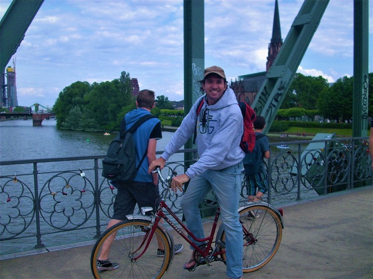 Bicicleteando sobre el antiguo puente “Eisener Steg”.