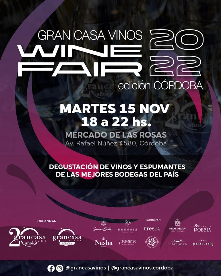 De esta manera, la empresa, a través de su franquicia Gran Casa Vinos Córdoba, que dirige Pablo Cuberli, presenta su primera Wine Fair Edición Córdoba 2022. La feria se realizará el martes 15 de noviembre, de 18 a 22, en las instalaciones del Mercado de las Rosas, en la capital cordobesa.