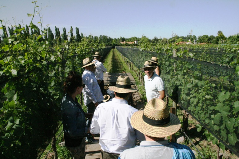 Los turistas conocen de cerca los secretos del viñedo.