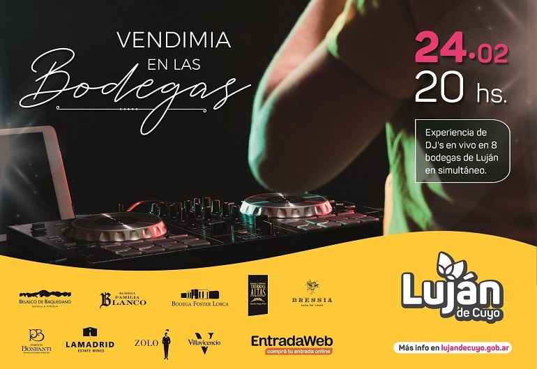 De esta manera, el viernes 24 de febrero, se llevará adelante la tercera edición del evento en ocho bodegas de Luján de Cuyo: Foster Lorca, Belasco de Baquedano, Bressia, Lamadrid Estate Wines, Zolo, Tierras Altas, Bonfanti y Familia Blanco Wines. En estos espacios vitivinícolas lujaninos asignados, de manera simultánea, se realizarán presentaciones que integran espectáculos artísticos, la transmisión de una película con temática de vendimia y, como propuesta fuerte, la participación de reconocidos Djs del país.