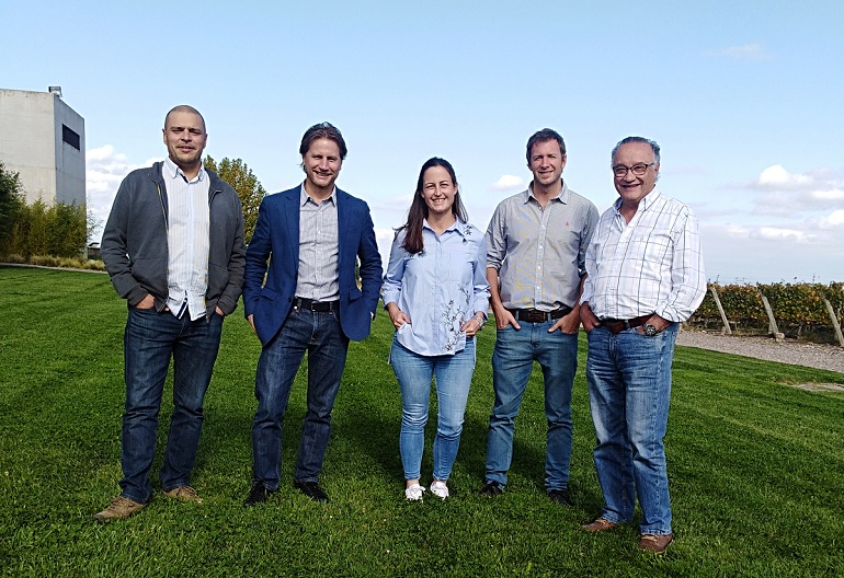 Bauzá Moreno junto a Diego Morales (agrónomo) y los enólogos Gabriela García, Jorge Cabeza y Pepe Galante.