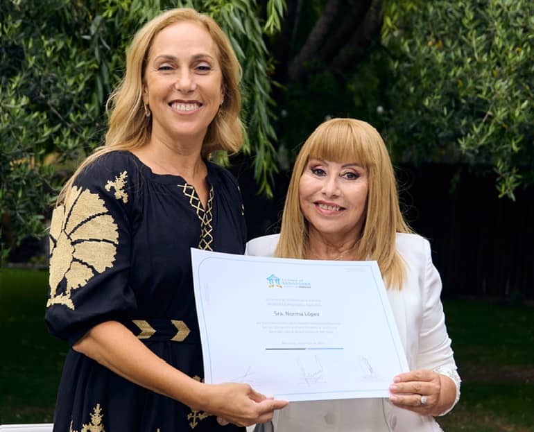Durante el agasajo, Norma López recibió una distinción legislativa entregada por la senadora Fernanda Sabadín, en reconocimiento a su destacada trayectoria y a su aporte a la comunidad mendocina.