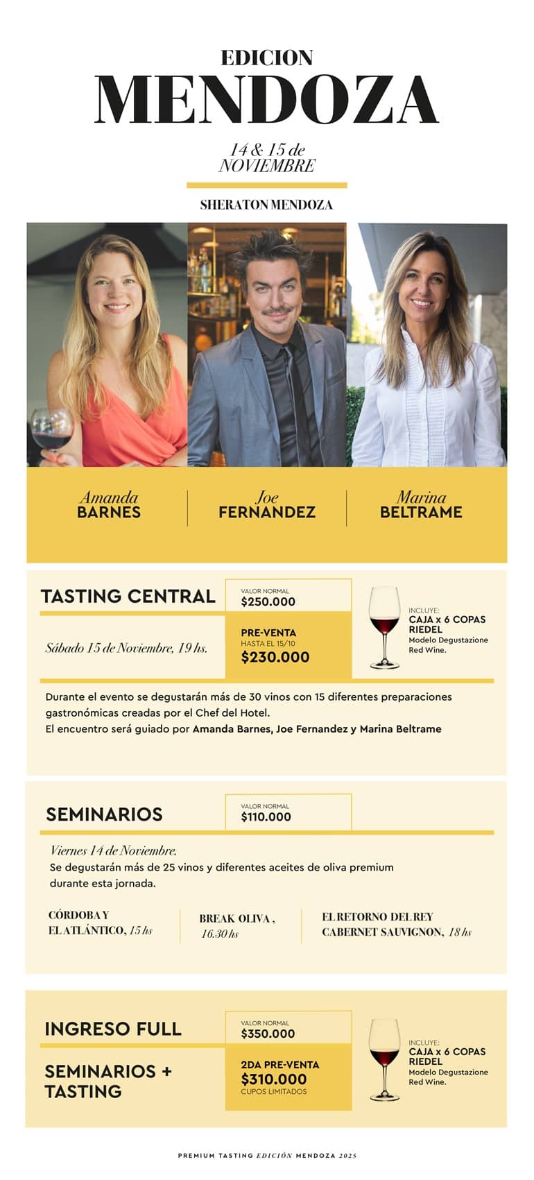 Con su formato consolidado y la presencia de referentes nacionales e internacionales, Premium Tasting Mendoza 2025 se prepara para ofrecer una experiencia que combina aprendizaje, degustación y placer en torno al vino argentino.