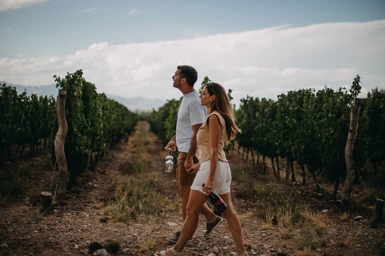 Tras un tiempo de descanso en la Villa Privada, el programa propone una caminata entre viñedos y, más tarde, una Media Tarde con frutas naturales, yogures, cereales, infusiones y detalles especialmente preparados en el Guest House del Lodge.