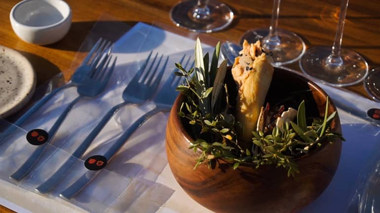 La experiencia continúa con un almuerzo basado en súper alimentos: hummus de garbanzos con sésamo tostado y oliva; crema de remolachas, frutillas y queso azul; pepinos encurtidos, requesón de cabra, jengibre y frutos secos; bife de coliflor especiado con aceite de trufas y mix de verdes. Como plato principal, se podrá elegir entre trucha a la plancha con vegetales asados y ajo blanco, o risotto de arroz yamaní con calabazas asadas y naranjas. El cierre dulce incluye frutas a la plancha con almíbar de menta, granita de manzana verde y almendras cítricas.