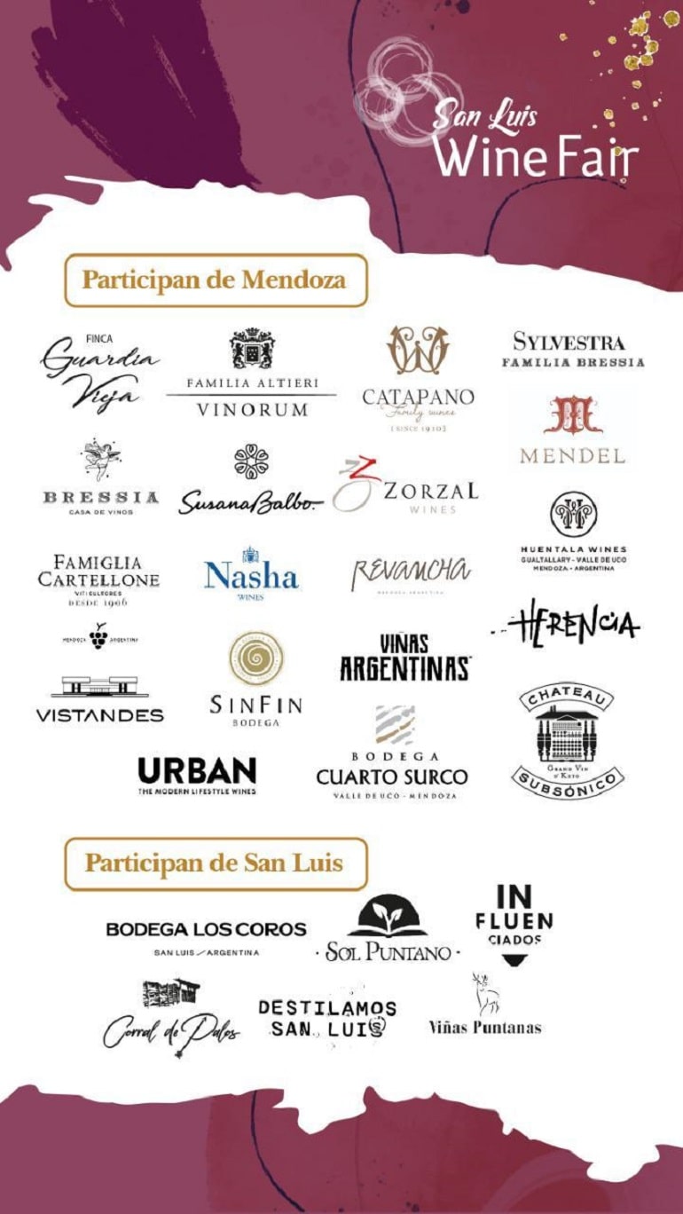 Las bodegas de Mendoza que participarán de esta edición son: Finca Guardia Vieja, Vinorum, Catapano Family Wines, Sylvestra, Bressia, Urban Wines, Viñas Argentinas, SinFin, Nasha Wines, Susana Balbo, Zorzal Wines, Mendel, Revancha, Huentala Wines, Herencia Wines, Cuarto Surco, Viña Cobos, Pascual Toso, Urban, Chateau Subsónico, Famiglia Cartellone y Dilema.